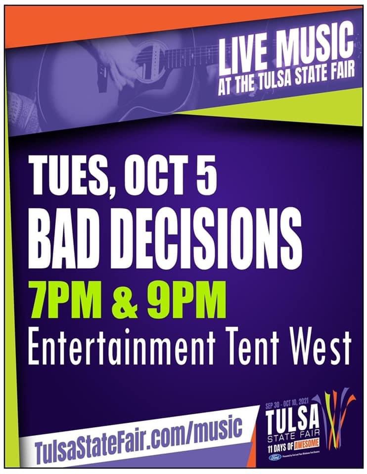 Tuesday, Oct 5 at The Tulsa State Fair by mwarren on October 3, 2021March 29, 2022 Share this: Click to share on X (Opens in new window) X Click to share on Facebook (Opens in new window) Facebook