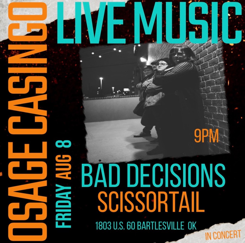 Friday Aug 8 Osage Casino by mwarren on August 7, 2025August 7, 2025 Share this: Click to share on X (Opens in new window) X Click to share on Facebook (Opens in new window) Facebook
