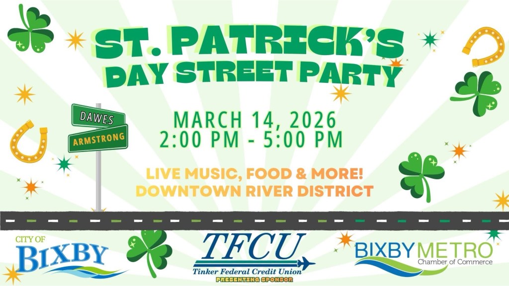 Saturday March 14 Bixby Chamber Street Party by mwarren on February 23, 2026February 23, 2026 Share this: Share on X (Opens in new window) X Share on Facebook (Opens in new window) Facebook