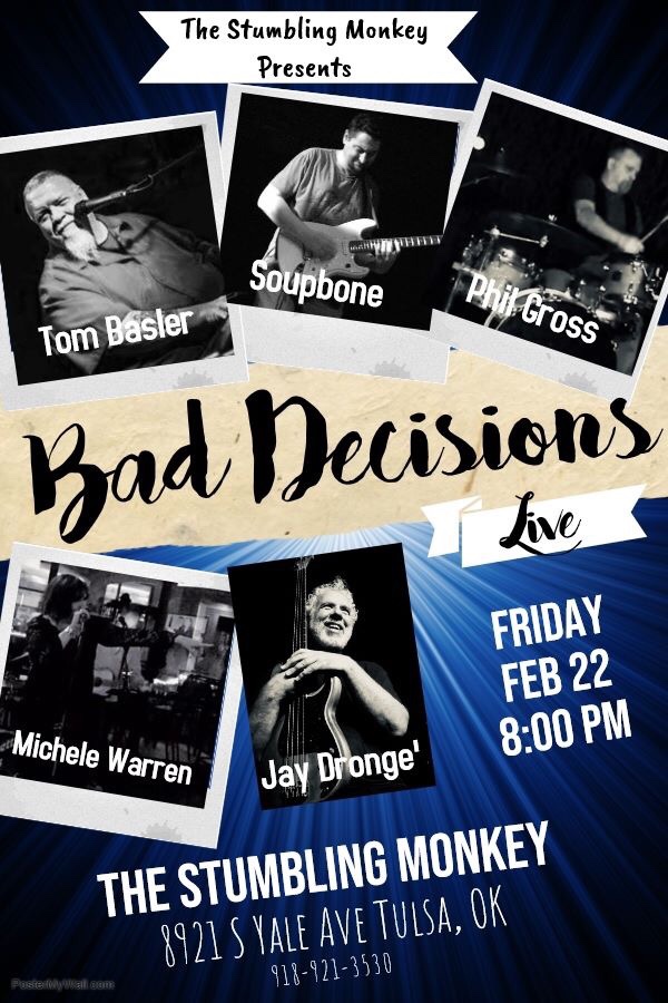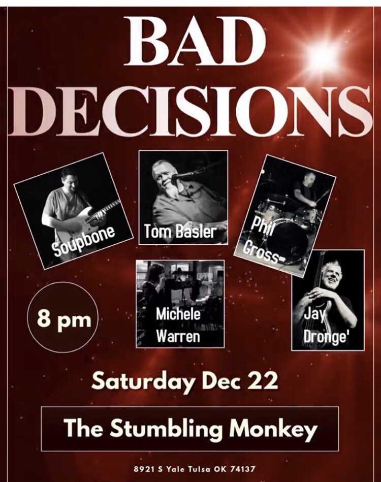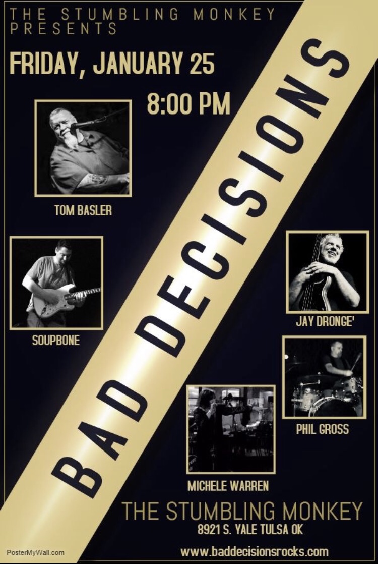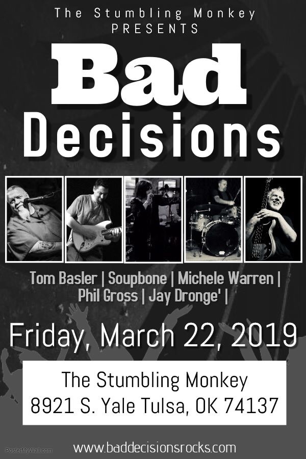 Bad Decisions will be rockin’ The Stumbling Monkey with your favorite tunes from the 70s, 80s, 90s and 2000s. Guaranteed good time! Come on out!