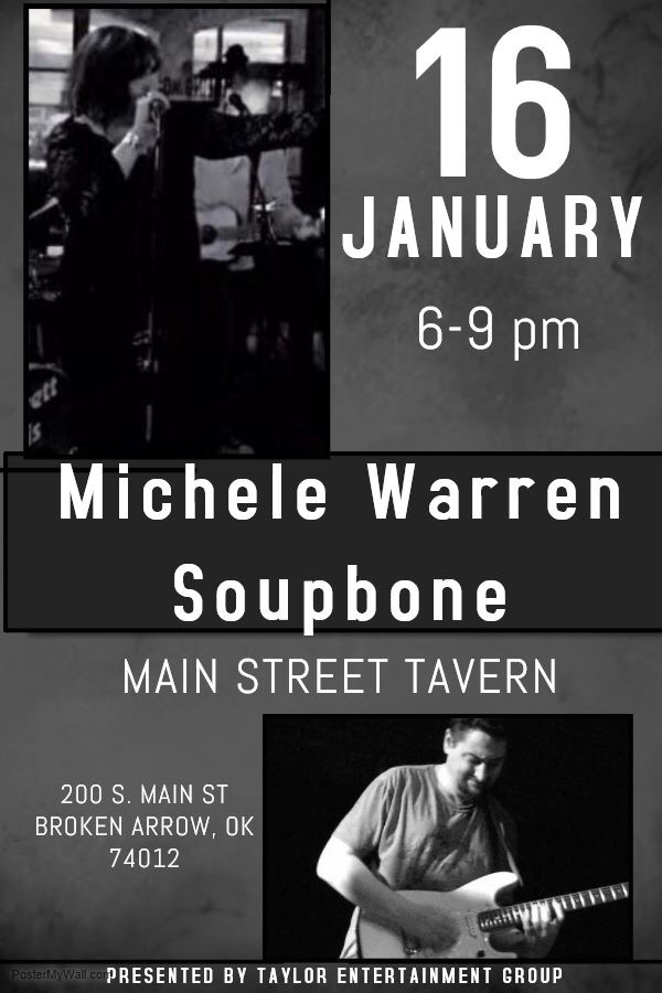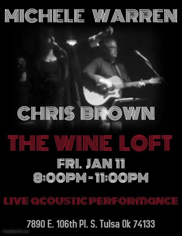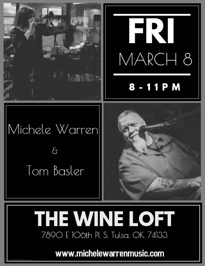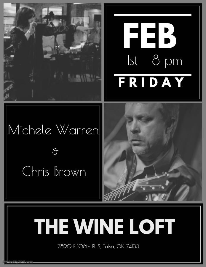The Wine Loft has great food and great drinks, come on out and enjoy music from Michele and Soupbone from 8:00 – 11:00. The Wine Loft is located at 106th and Memorial in Tulsa.